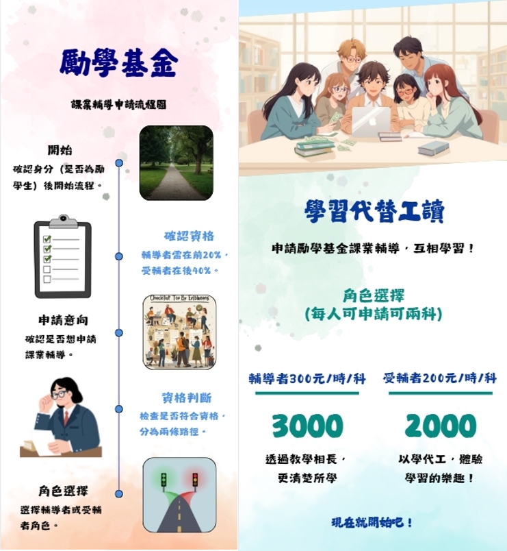 | 獎助學金 | 勵學課業輔導媒合SOP! | 附件檔案 1 附件檔案 2 |