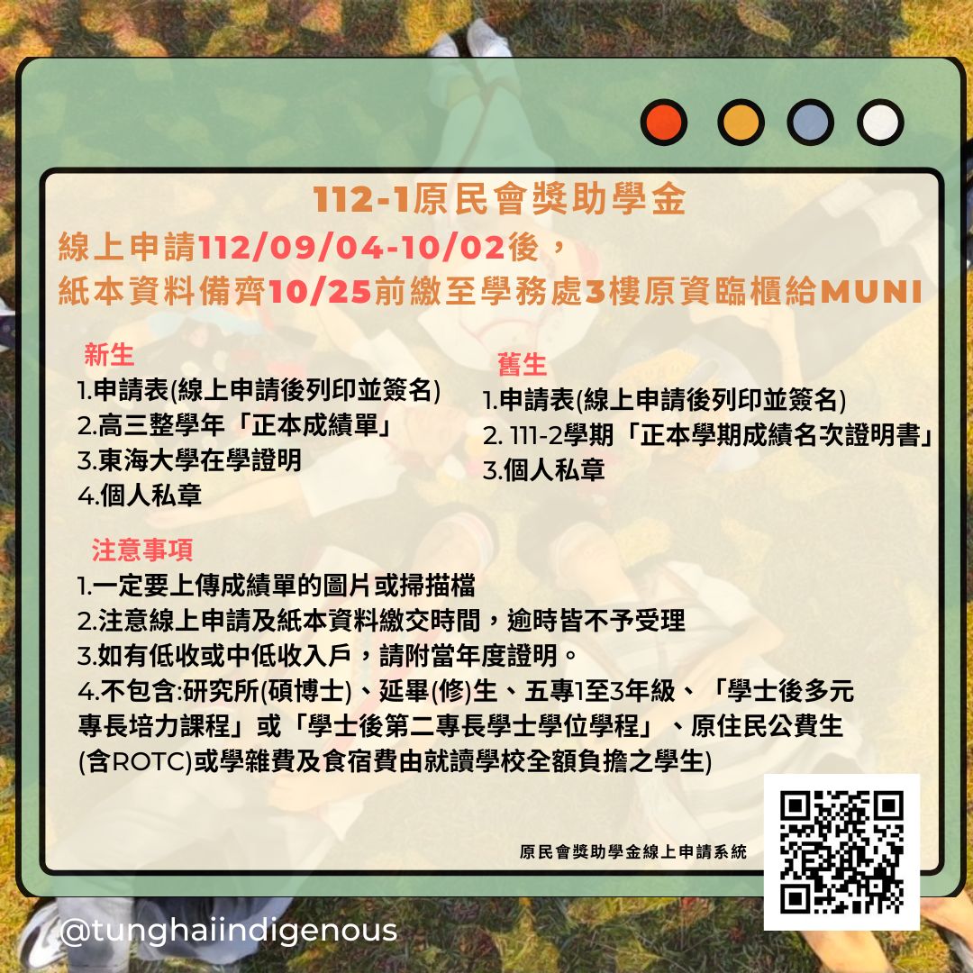 112-1原委會大專校院獎助學金申請