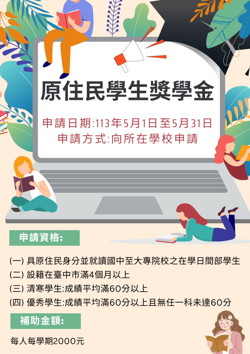 凡設籍本市四個月以上、具原住民身分、現就讀國內各公(私)立大專院校(含 研究所碩士班、博士班)、高中職、國民中學(以下簡稱國中)
