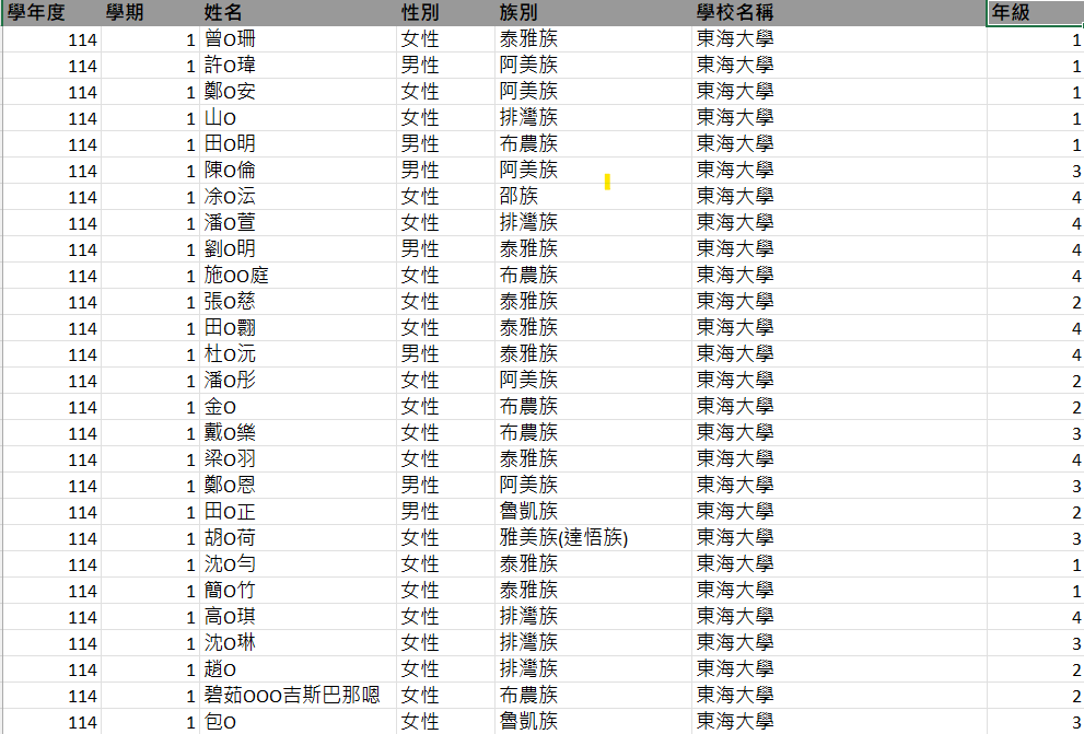 獲獎名單公告-114學年度第1學期原住民學生就讀大專校院助學金第1階段獲獎名單