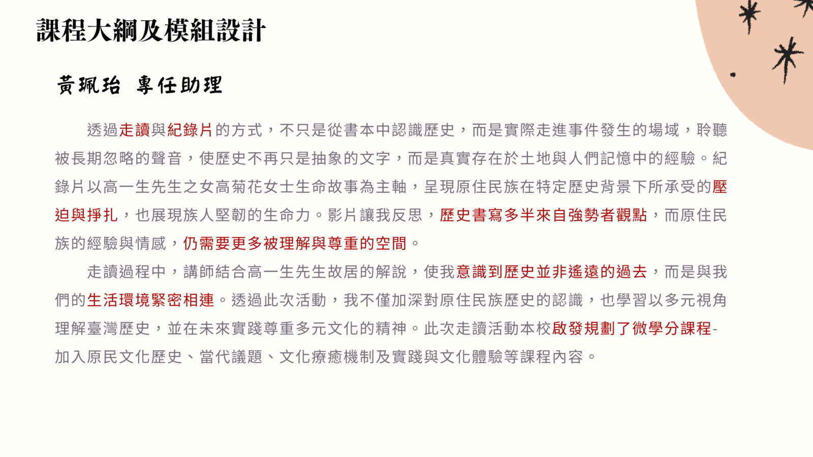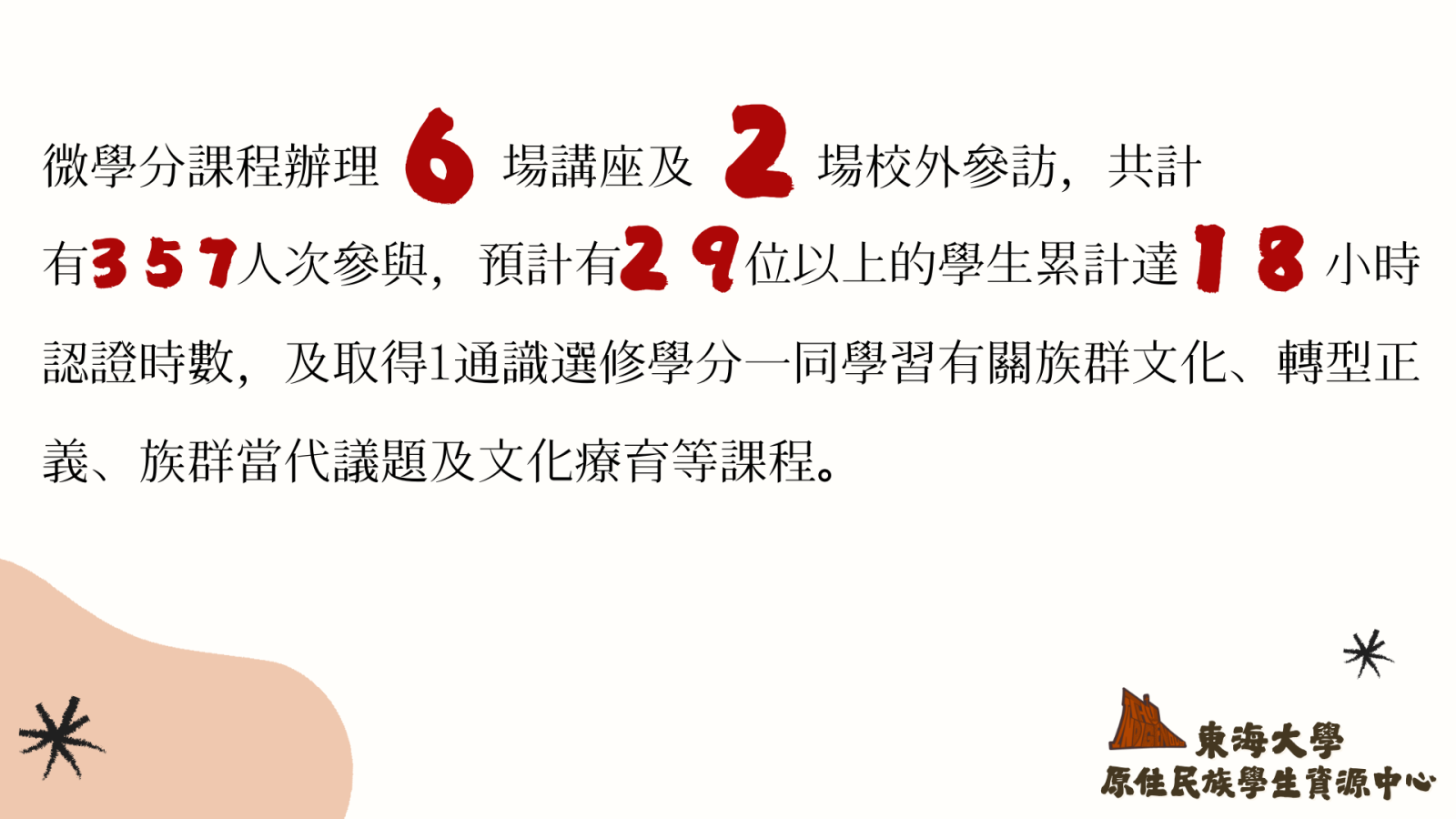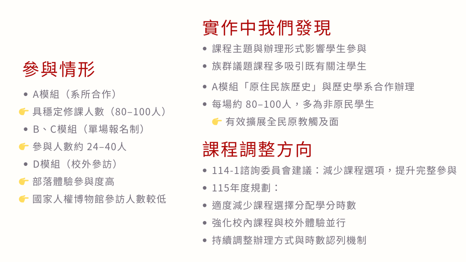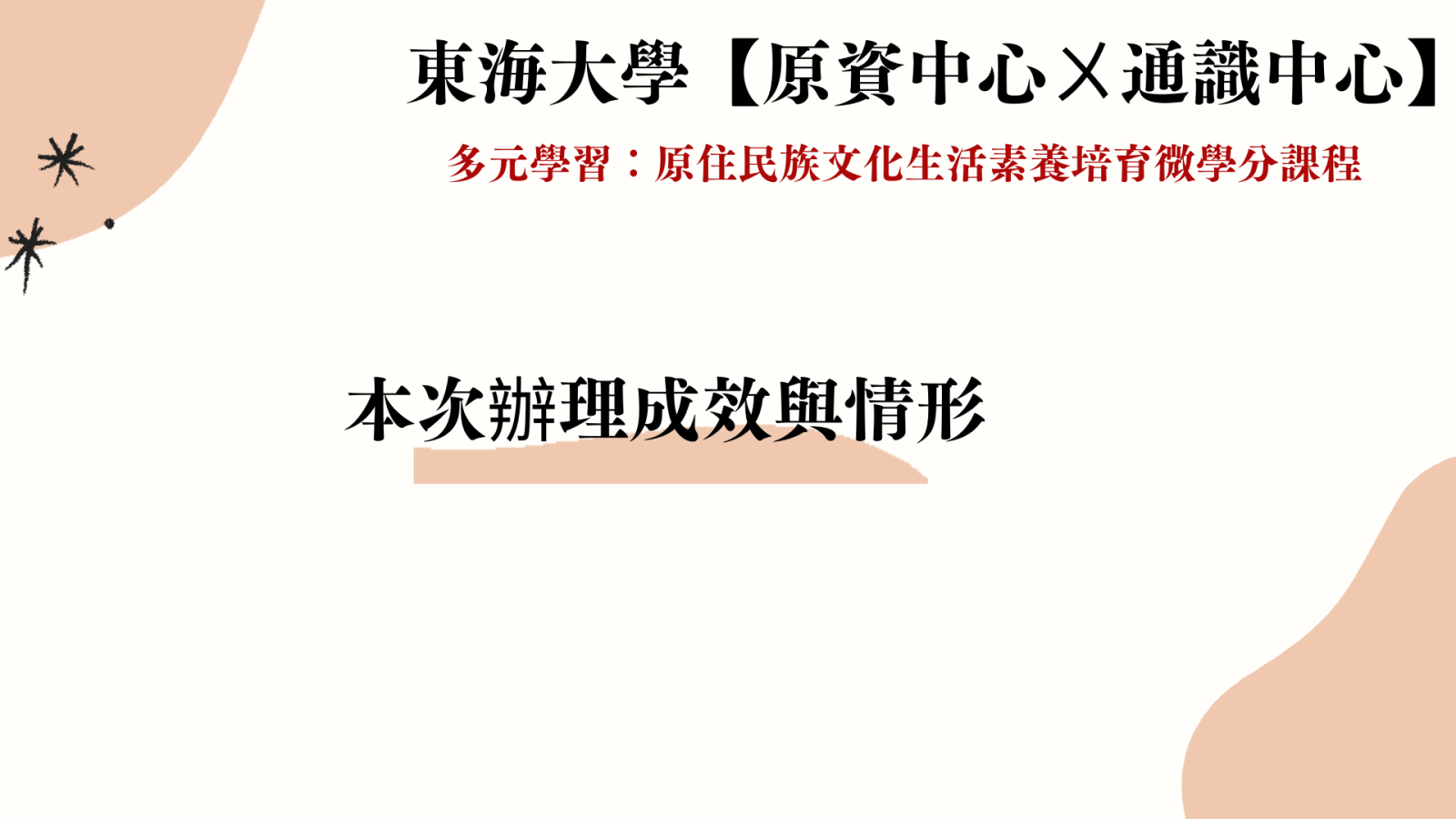 114-1原住民族文化素養培育微學分課程辦理經驗分享