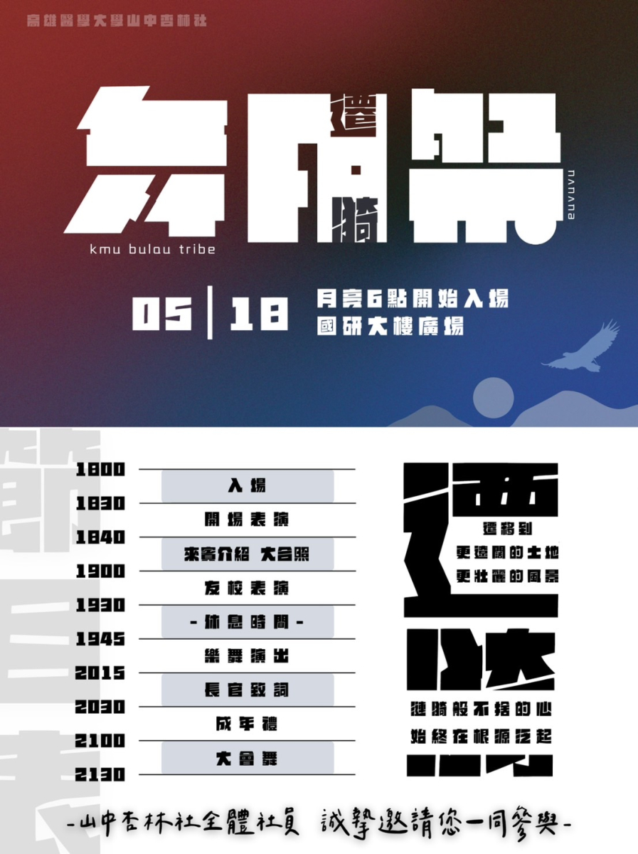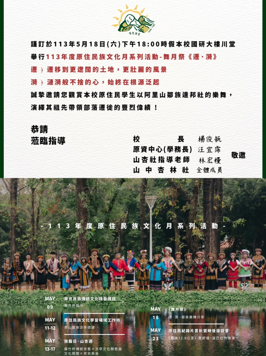 誠摯邀講您觀賞本校原住民學生以阿里山鄒族達邦社的樂舞,