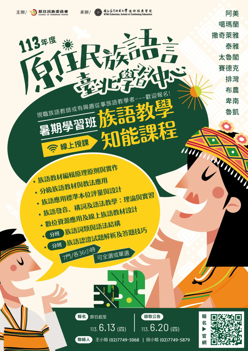 一、為協助強化原住民族語言師資教學專業知能,期有效提升原住民族語言教學質與量,並強化族語傳承與發展之深度