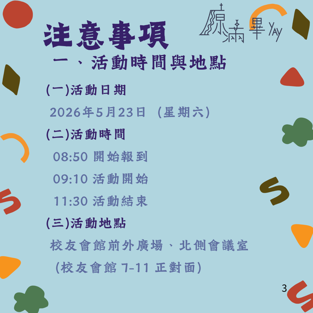 地點|校友會館前外廣場(7-11正對面)、北側會議室